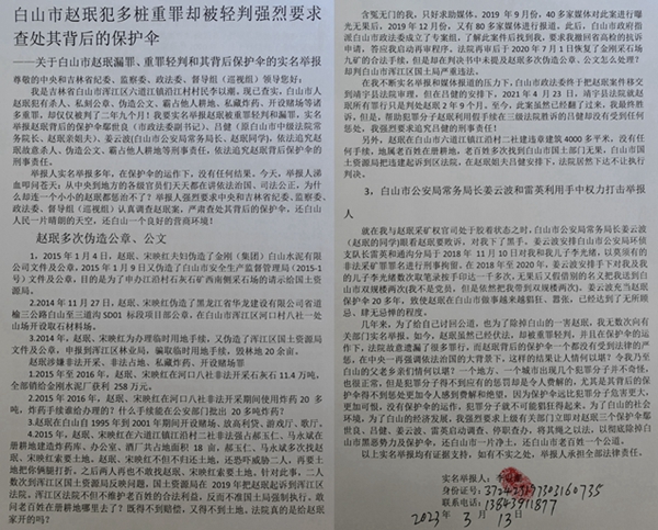 ——关于白山市赵珉漏罪、重罪轻判和其背后保护伞的实名举报